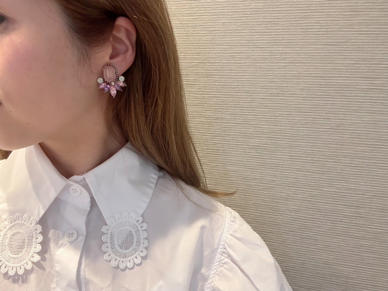 さりげなくついた小さなお花。誰にも気づかれない儚さと女性心を忘れないかわいさがポイントです。